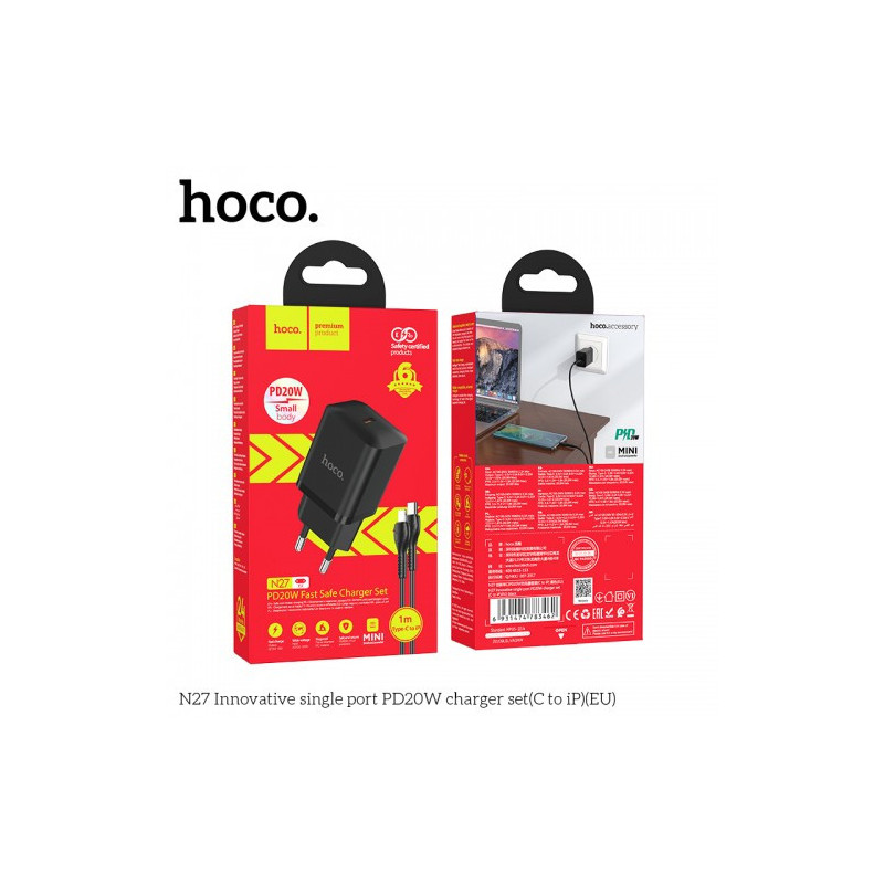 Charger Hoco 'N27' black (PD20W) + 'Type-C / Lightning' 100cm cable