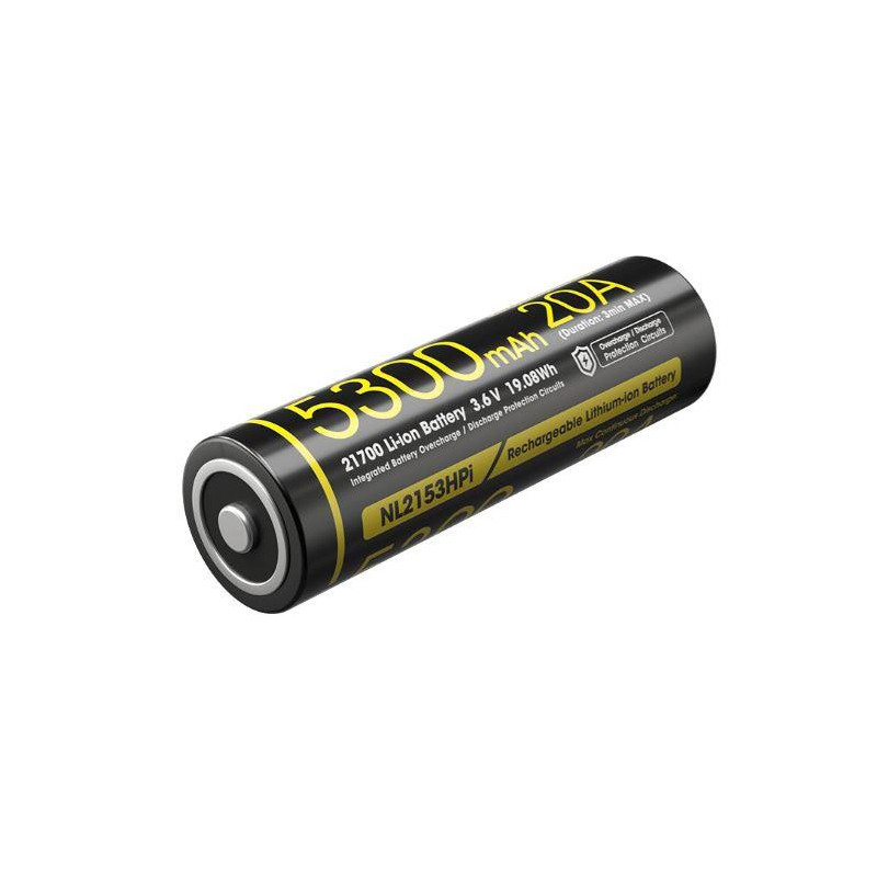 Capacity: 5,300mAh Voltage: 3.6V Continuous Discharge Current: 20A MAX Length: 77.2±0.3mm Diameter: 22.2±0.3mm Vendor Homepage flashlight.nitecore.com/product/nl2153hpi Unit Box Height 0.08 Unit Box Length 0.14 Unit Box Width 0.03 Nominal voltage 3.6 V...