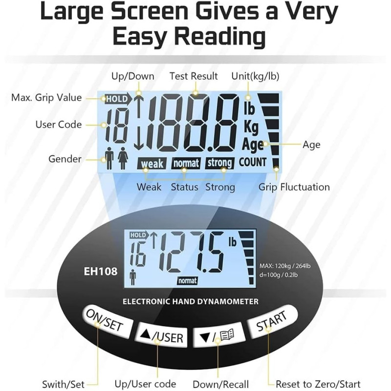 This advanced hand dynamometer measures grip strength up to 120kg (265 lbs) with excellent accuracy, making it suitable for both beginners and professionals. The built-in LCD screen clearly displays your results, while smart tracking features help you monitor improvements over time.