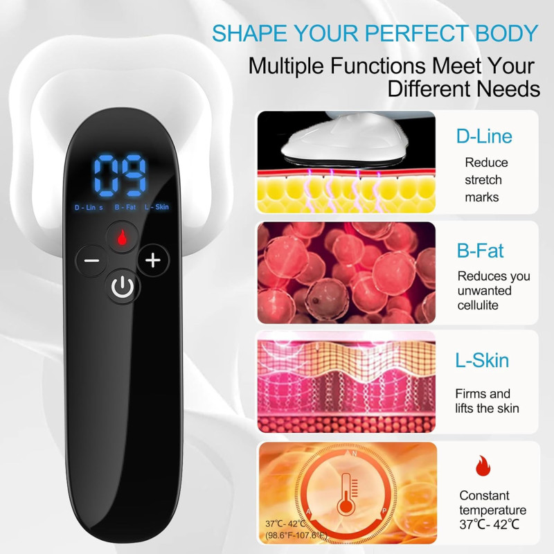 This modern electric massager is designed to provide deep tissue massage and help improve skin condition and body contour. Thanks to its advanced massage technology, it effectively stimulates blood circulation, reduces the appearance of fat deposits, and promotes skin firmness.