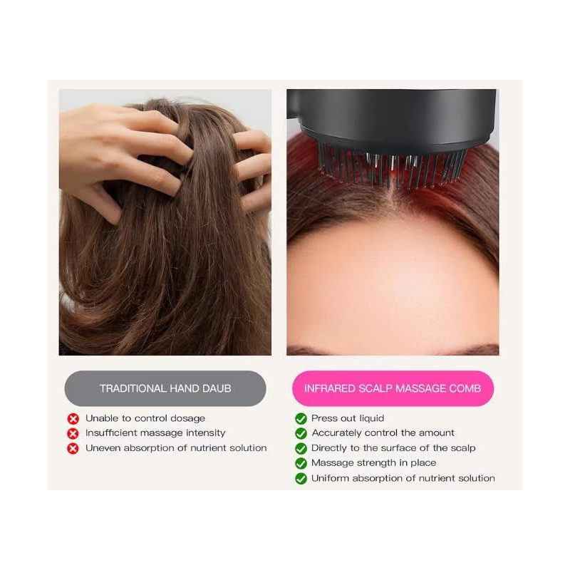 Oil Applicator: Ensures even distribution of nutrients from hair care oils, helping strengthen hair follicles.