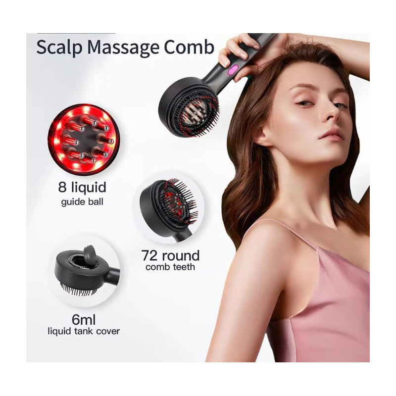 Innovative Electric Scalp Massage Comb with Vibration, Red Light Therapy, and Oil Applicator