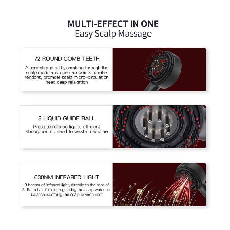 Growth stimulation: Active ingredients combined with massage directly stimulate follicles and promote hair growth.
