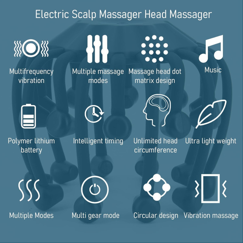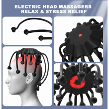 KTS Electric Head Massager Octopus is an advanced electric scalp massager designed for relaxation, scalp stimulation, and stress relief. The device features 20 flexible massage nodes, 5 massage modes, red light therapy, and a built-in Bluetooth function that allows you to listen to your favorite music during the massage. It is a convenient way to enjoy a relaxing head massage at home.