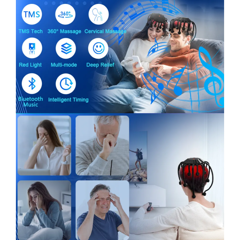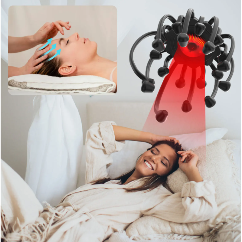The KTS Octopus Head Massager is designed to provide a soothing and relaxing scalp massage anytime. Its 20 massage nodes gently stimulate the scalp, while 5 massage modes allow you to choose the desired intensity. The integrated Bluetooth function lets you connect your phone and play music during the massage, while red light therapy helps stimulate the scalp.