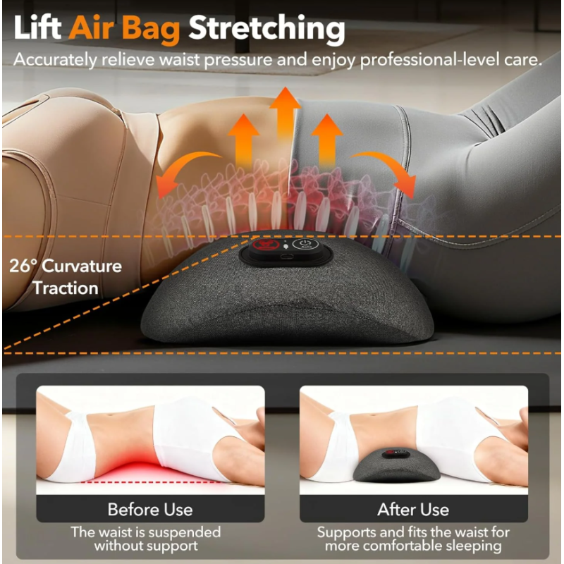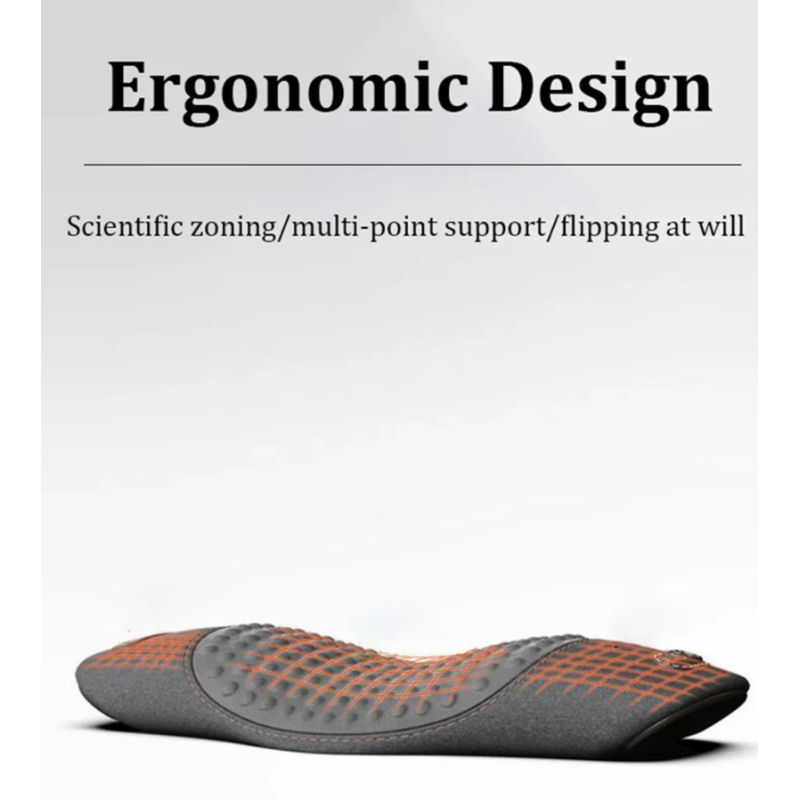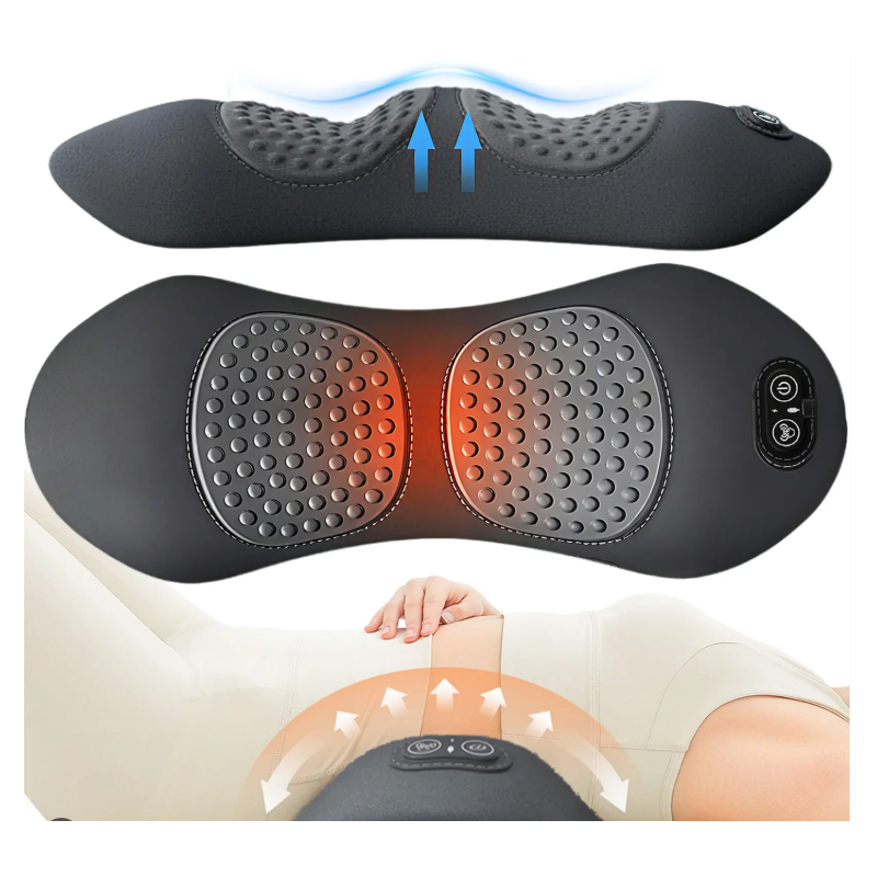 The vibration lumbar pillow is designed to provide maximum comfort during sleep or rest. Its special shape supports the natural curve of the spine and helps reduce pressure on the lower back.