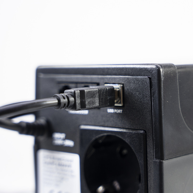 UPS with modified sine wave output, and voltage stabilization on output. It is used together with office, small and medium office equipment. Not recommended and not used with pumps, motors, laser printers, inductive electronics, etc.