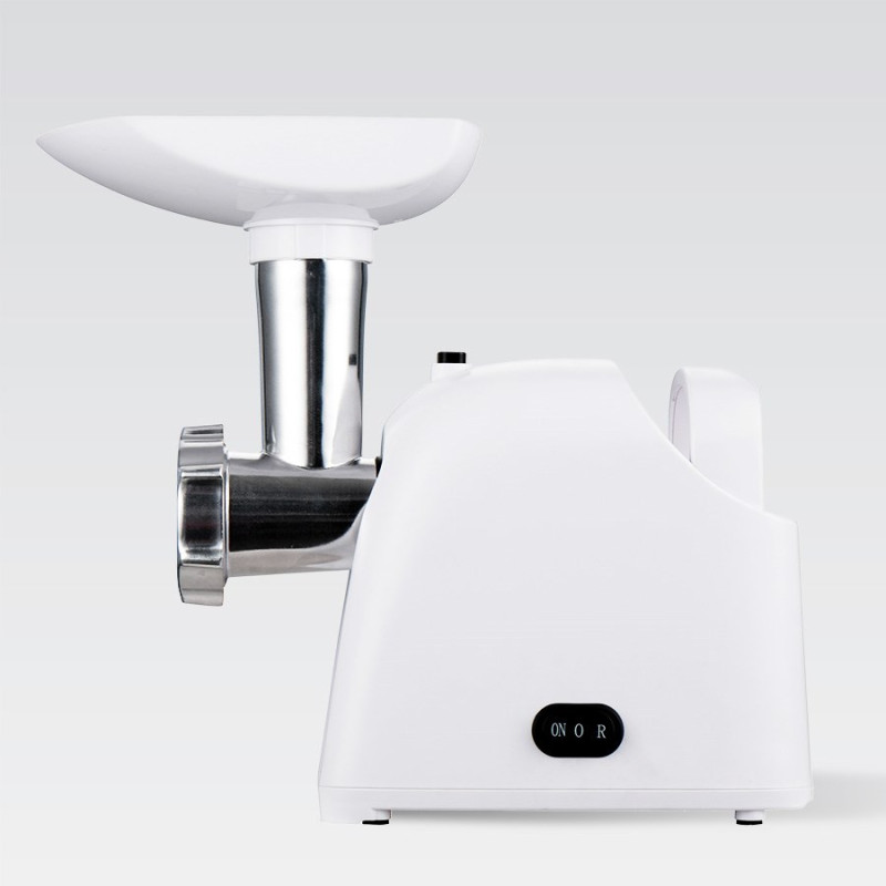 The MAESTRO MR-852 meat grinder has a maximum power of 1000 W and a nominal power of 400 W. It has two filters, a sausage making nozzle and a meat grinder, making it perfect for grinding meat.