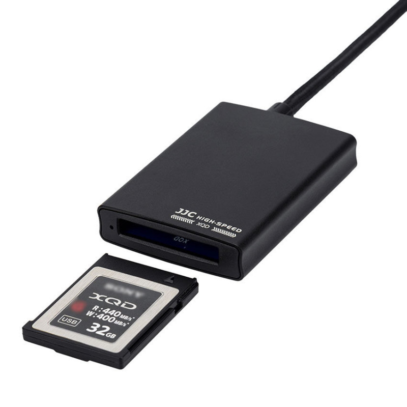 The JJC CR XQD BLACK card reader supports XQD memory cards and offers USB 3.2 Gen1 transfer speeds of up to 5Gbps. It features dual-function with Type C and USB A connectors for universal compatibility, and is compatible with a variety of operating systems.