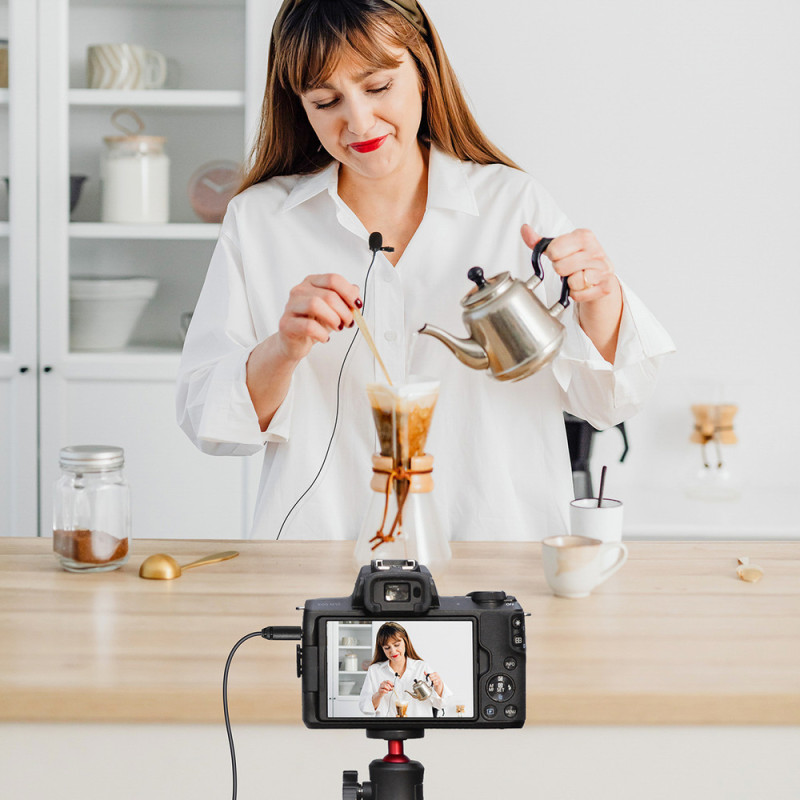 The BOYA BY-M1 Pro II is an improved lavalier microphone designed for recording with greater control and improved sound quality. Its condenser design and omnidirectional pickup pattern deliver natural sound in a variety of environments. A mode switch allows for compatibility with smartphones and cameras without additional adapters. A built-in pad switch and headphone monitoring enhance signal control. The microphone is battery-free, simplifying operation. This solution streamlines recording and provides greater control over sound.