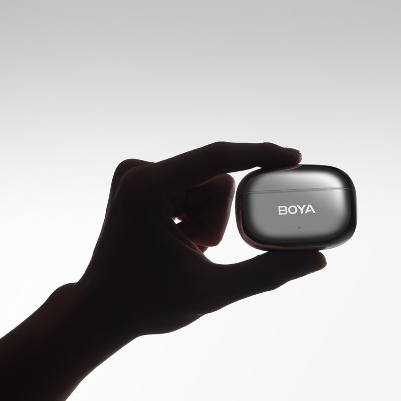 The BOYA mini 2-02 is a compact 2.4 GHz microphone system that combines a small footprint with advanced audio technology. Weighing approximately 5g, the transmitters remain discreet and comfortable for everyday use. The system offers high-quality 48 kHz/24-bit recordings and effective AI noise reduction down to -40 dB. A built-in limiter and safety tracker enhance recording control. The charging case extends battery life to 30 hours, ensuring continuous operation. This solution streamlines recording and gives you greater control over your audio.