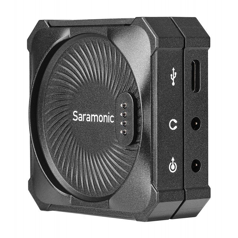The Saramonic BlinkMe B2 is a wireless audio streaming kit like never before. A patented receiver design that doubles as a charging station for the transmitters, a magnetic mounting system, TFT touchscreens, customizable wallpaper, long battery life, 8GB of internal storage, and mobile app support are just a few of the key features of this unique piece of equipment.