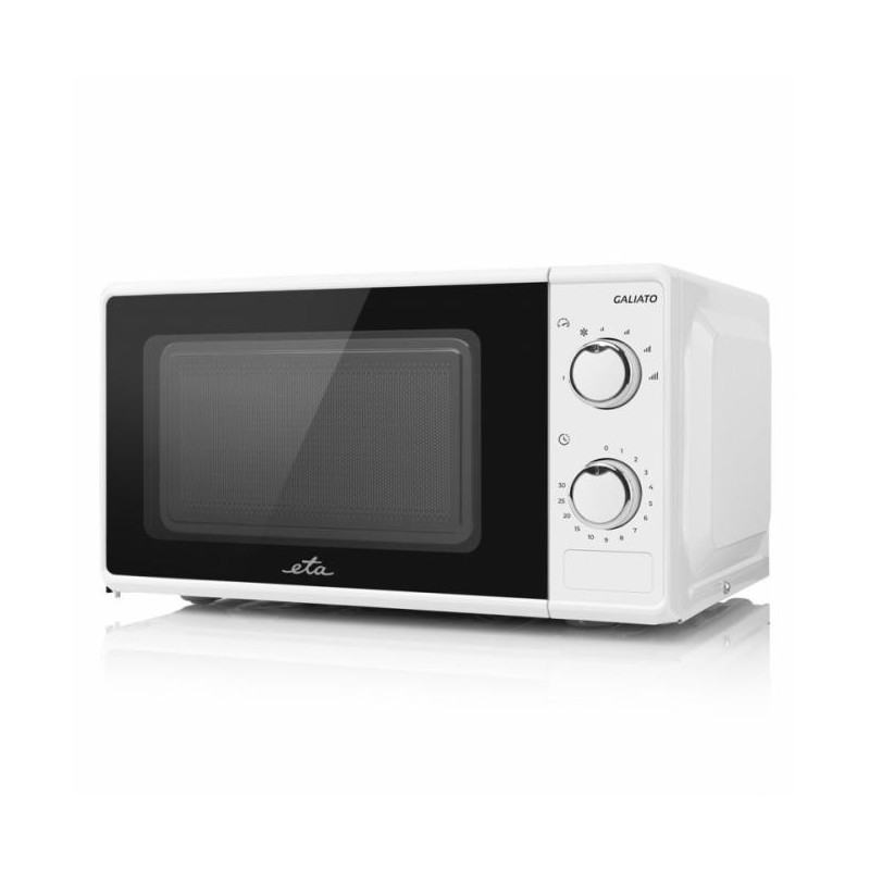 The ETA Galiato microwave ovenis distinguished by its simplemechanical controlandmodern design.You have6 power levels,the highest of which reachesup to 700 W.The defrostfunction,in turn, will help you prepare food from the freezer faster.