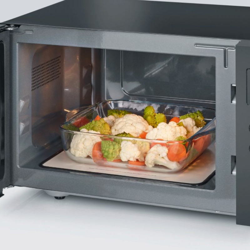 · Due to 20% larger usable capacity* also suitable for large dishes. Perfectly suitable for square casseroles and large plates. (*compared to conventional microwaves with rotary plate (e.g. MW 7756))