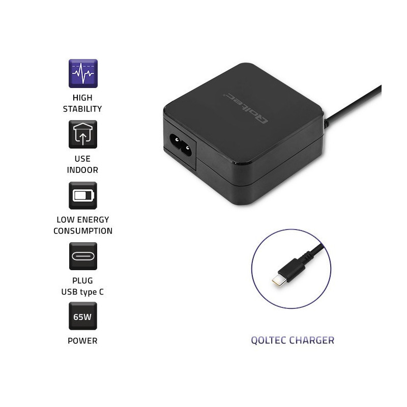 Qoltec 51027 Charger | 65W | 5-20.3V | 2-3.25A | USB type C | PD