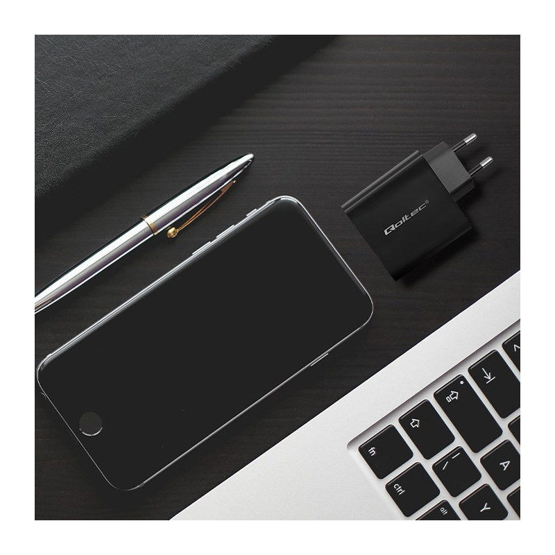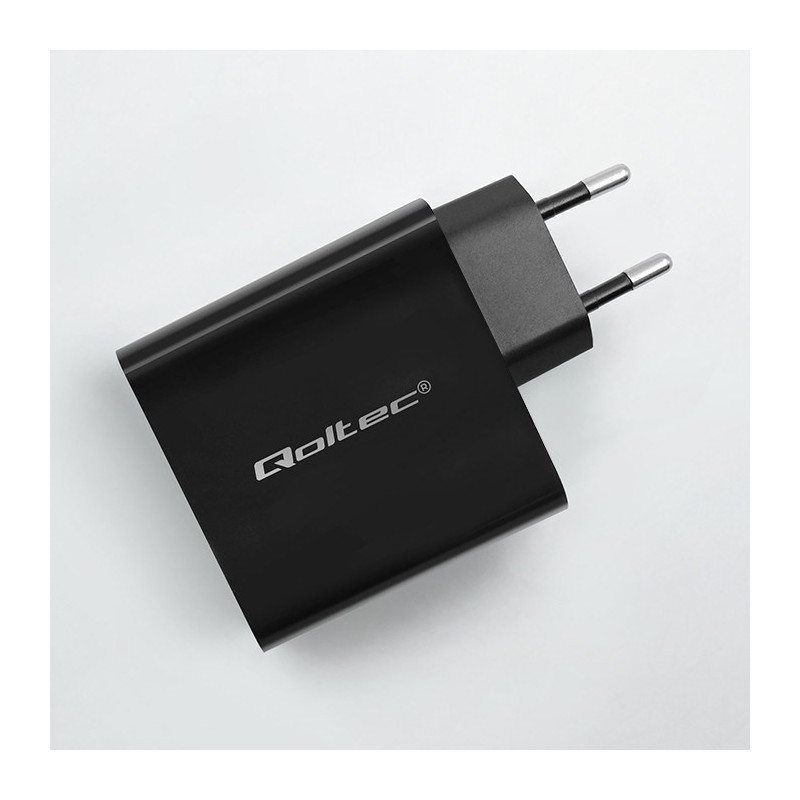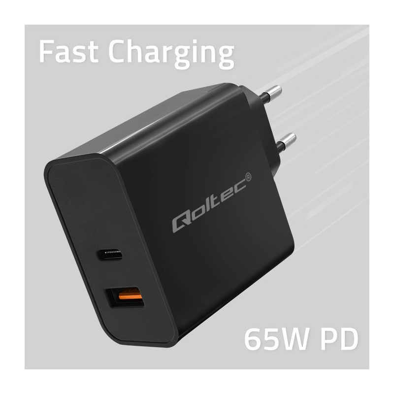 Qoltec 52380 Super Quick PD Charger | 1xUSB-C | 1xUSB | 65W | 5-20V | 1.5-3.25A | Black