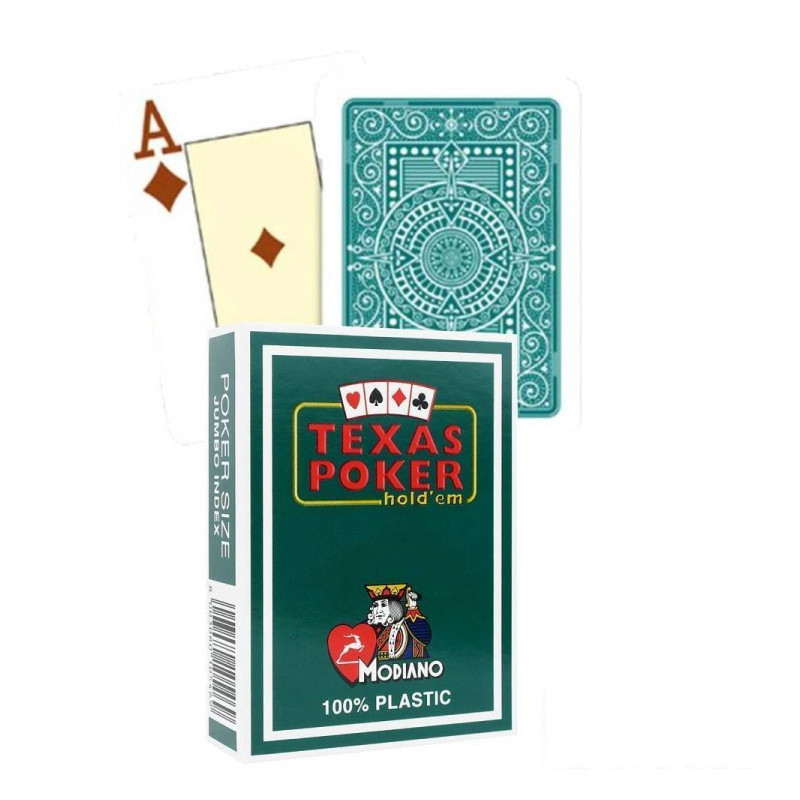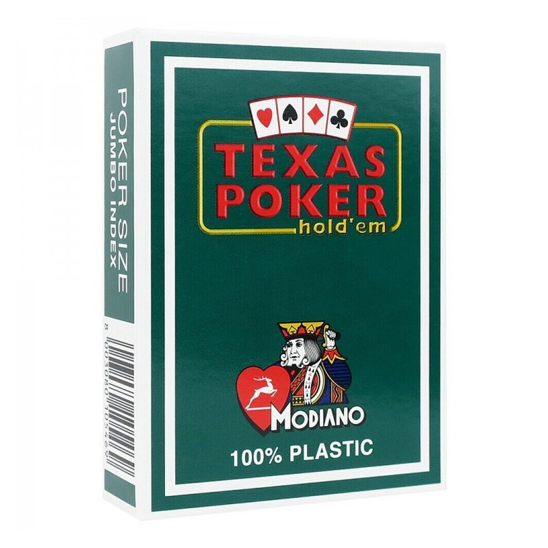 This Modiano deck is made of 100% plastic. 100% plastic cards are typically 20 times more durable than plastic-coated cards. These cards are also water-resistant, scratch-resistant. Texas Poker are Jumbo index cards that are ideal for any poker game and beyond.