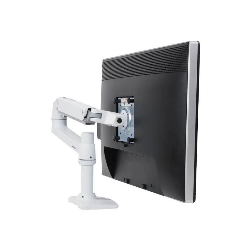The Ergotron LX Desk Monitor Mount features a sturdy aluminum and steel construction that can support weights from 3.2 to 11.3 kg. It allows for easy monitor adjustment with 75° tilt, 360° swivel, and an integrated cable management system for a clutter-free workspace.