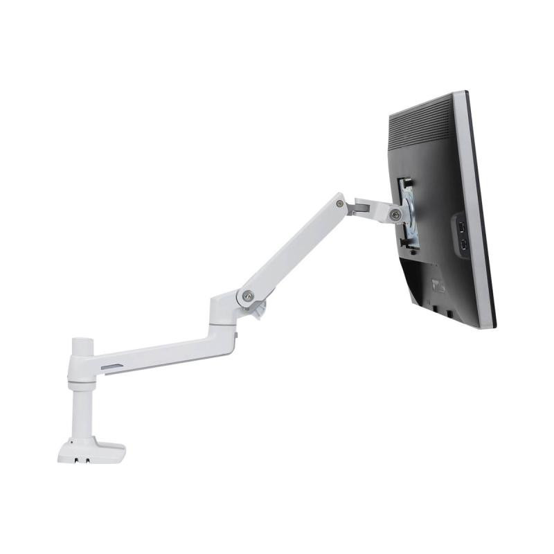 The Ergotron LX Desk Monitor Mount features a sturdy aluminum and steel construction with a weight capacity of 3.2 to 11.3 kg. It allows for easy monitor adjustment with 75° tilt, 360° swivel, and integrated cable management to keep your workspace tidy.