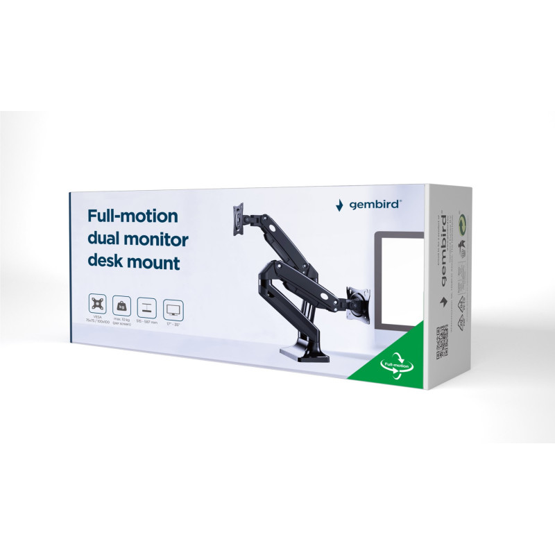 The Gembird Ma-da2-03 monitor stand is a sturdy desk mount designed to hold two monitors or a TV. It features a durable aluminum and steel construction with an elegant black finish.