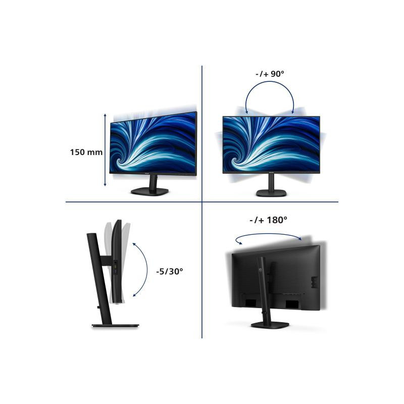 The Philips 27B2N3500J is a 27-inch QHD monitor with a resolution of 2560 x 1440 and a refresh rate of 120 Hz. It features ergonomic adjustments, a variety of connections, and is made from 85% recycled plastic.