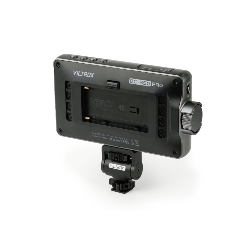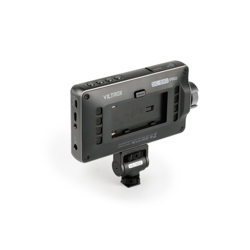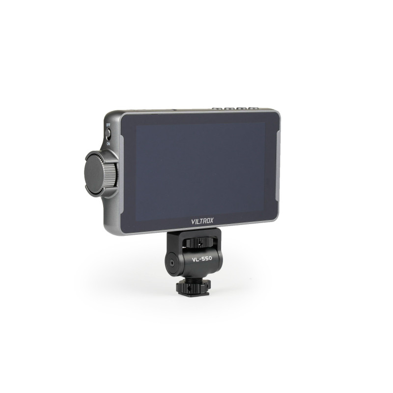 The Viltrox Monitor DC-550 PRO features a 5.5-inch display with a resolution of 1920 x 1080 pixels and a brightness of 500 cd/m². It has HDMI, AV and USB input connectors, as well as an HDMI output connector, ensuring versatile connectivity.