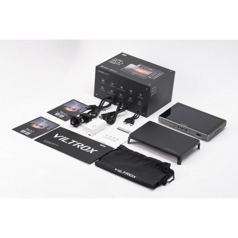 The Viltrox Monitor DC-L1 is a 7-inch IPS display with a resolution of 1280 x 800 pixels and 600 Nits brightness. It features HDMI input/output, a touchscreen, and professional monitoring tools, making it perfect for outdoor use and video production.