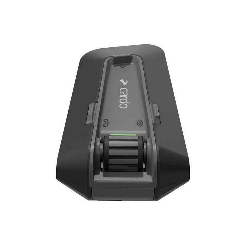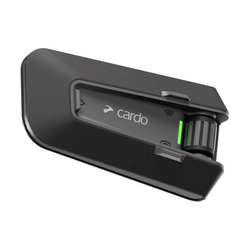 The Cardo Packtalk Neo Duo is a motorcycle intercom system that allows communication between riders up to 1600 meters away. It features Bluetooth 5.2 connectivity, is waterproof, and offers up to 13 hours of talk time on a single charge.