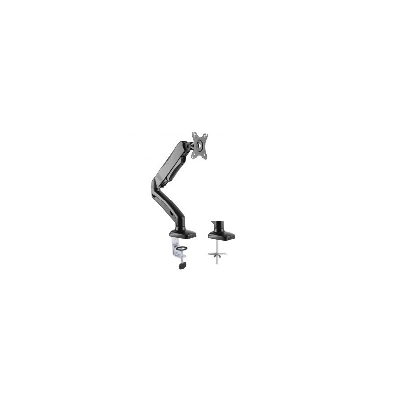 The ART L-15GD monitor stand features a black metal design and manual height adjustment from 160 to 410 mm. It supports screens from 33 cm (13") to 68.6 cm (27") with a maximum load of up to 6.5 kg and is VESA-mountable.