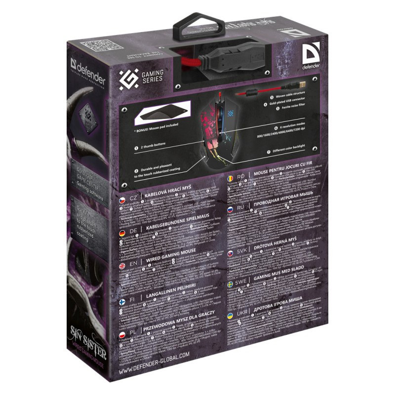 Gaming, optic, wired mouse DEFENDER GM-933 SIN'SISTER 7200dpi 6P RGB