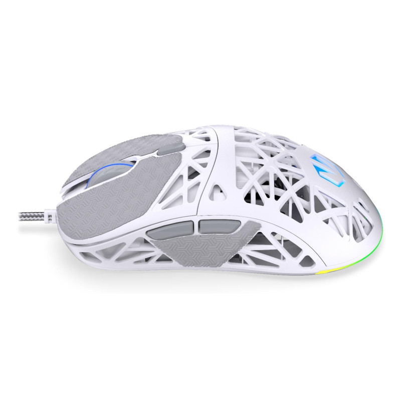 The self-adhesive grip tape, matching the onyx-white housing, grants you a firmer hold of the mouse, which, together with the PTFE feet (a second set included) provides fluid mouse movement. Thanks to this, LIV Onyx White works great even when the clicking gets intensive.