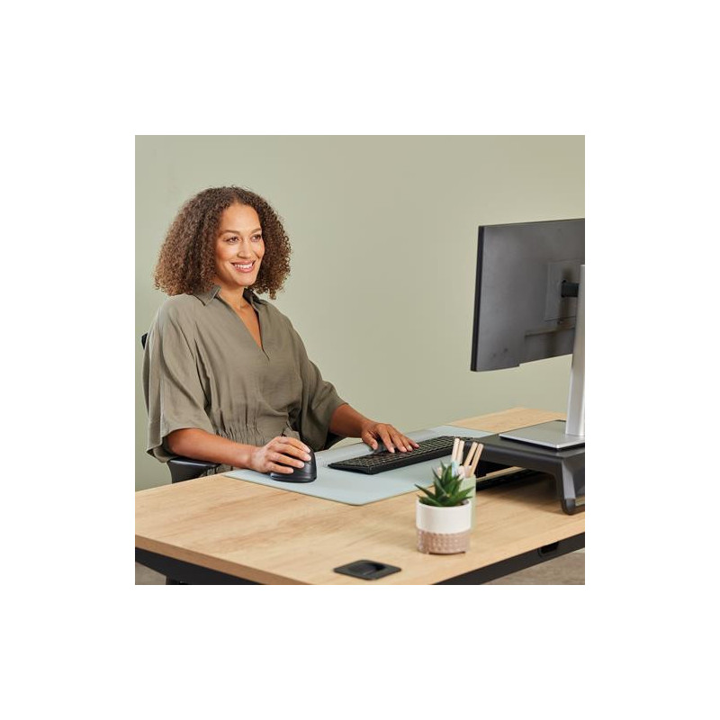 The Breyta™ Plus+ Ergonomic Vertical Mouse is designed to help reduce wrist strain with a 60° angled grip that supports a natural handshake position, easing tension in the hand and forearm. With 3-in-1 connectivity - Bluetooth® wireless, dongle, or wired - you get ultimate flexibility across devices. Built with Microban® antibacterial technology, it offers 24/7 protection for a cleaner, more hygienic workspace. Easy-access thumb buttons make browsing folders or the web effortless, while soft click buttons help minimise distractions. Enjoy a seamless mousing experience thanks to its precision laser and scroll wheel, offering smooth, accurate tracking (400-2100 DPI). The rechargeable battery lasts up to 4 months on a single charge and powers up in just 2 hours. Its plastic housing and buttons are crafted with 100% post-consumer recycled plastic. The Breyta™ Plus+ Ergonomic Vertical Mouse is built for comfort, performance, and peace of mind.