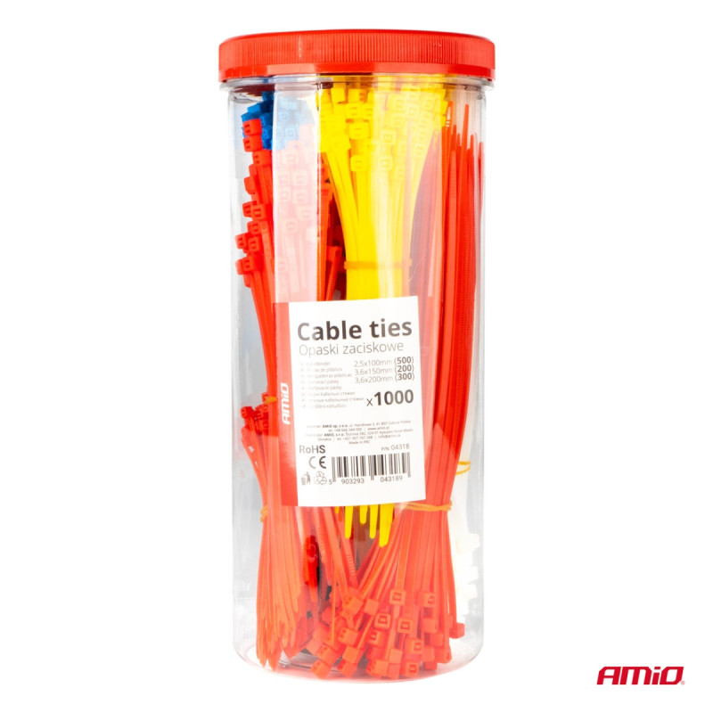 AMiO cable ties are made of durable, damage-resistant plastic, and their various colors make it easy to label and categorize cables and wires. Their robust locking mechanism ensures a durable and secure hold, making them an ideal choice for a variety of assembly and organization tasks.