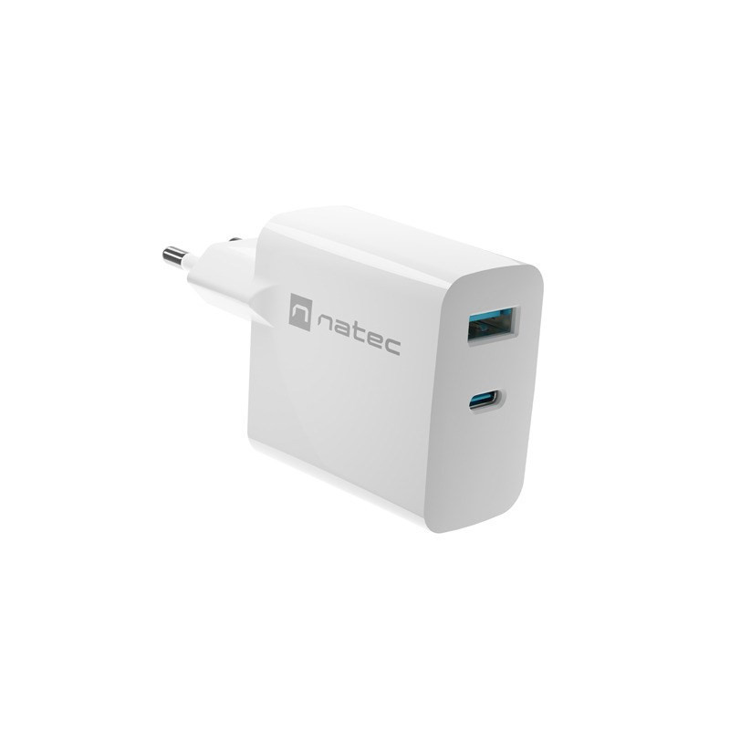 Charge your devices quickly and efficiently with the Natec Ribera 65W power adapter, featuring USB-A and USB-C ports, ensuring reliable power anywhere.