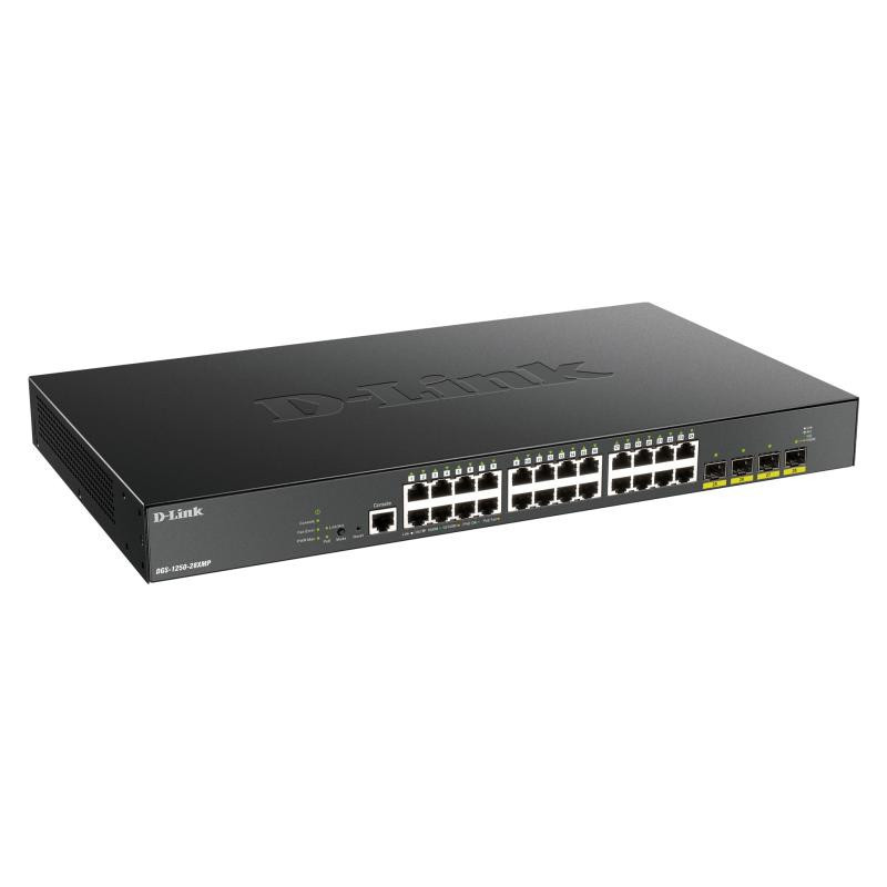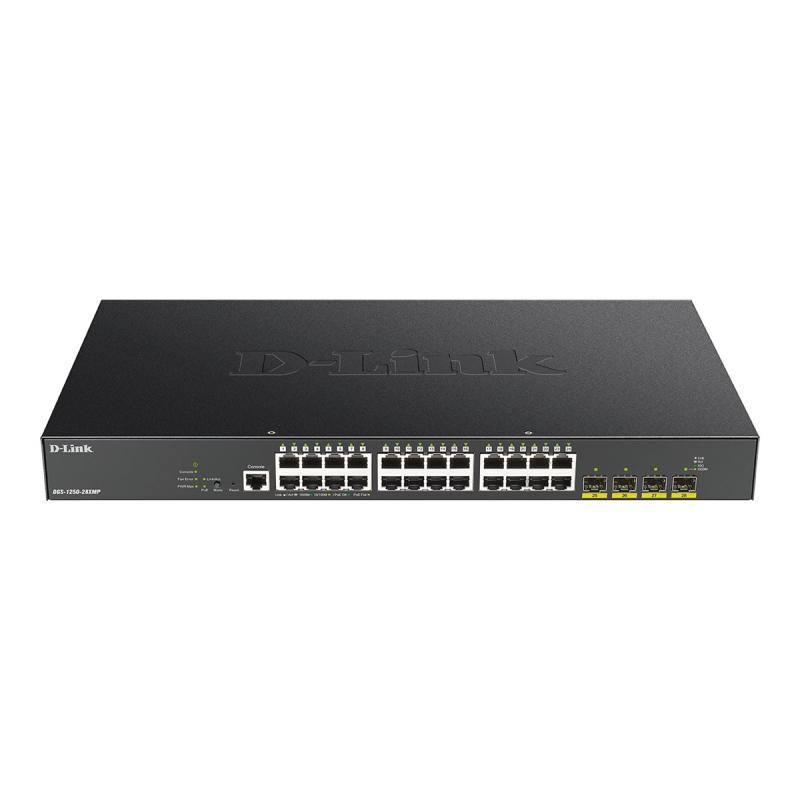 The D-Link DGS-1250-28XMP/E is a 24-port 1 Gbps network switch designed for efficient data management and communication in network environments.