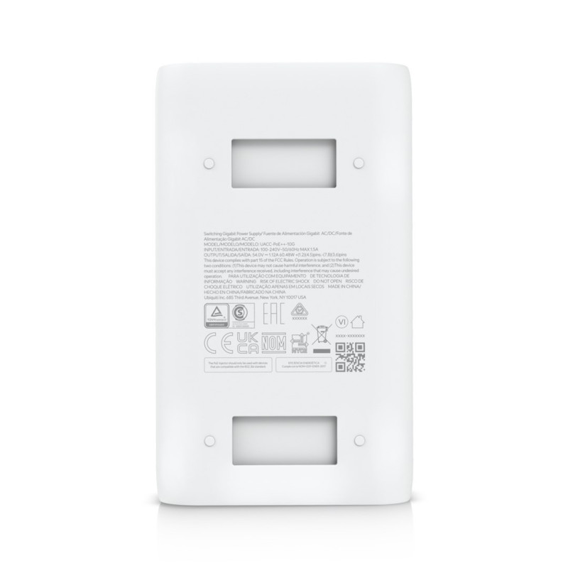 Wall-mounted 10 Gigabit Ethernet device with 60W PoE budget. Features: surge protection, LED status indicators and two Ethernet LAN ports.