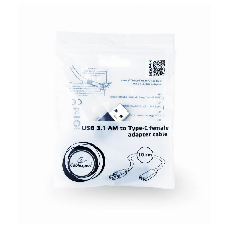 USB 3.1 AM to Type-C female adapter cable, 10 cm, black Enables you to connect your Type-C USB peripherals to a computer with regular (Type-A) USB ports Compact space saving design Vendor Homepage gembird.com/item.aspx?id=10067 Unit Box Height 0.09 Unit Box Length 0.12 Unit...