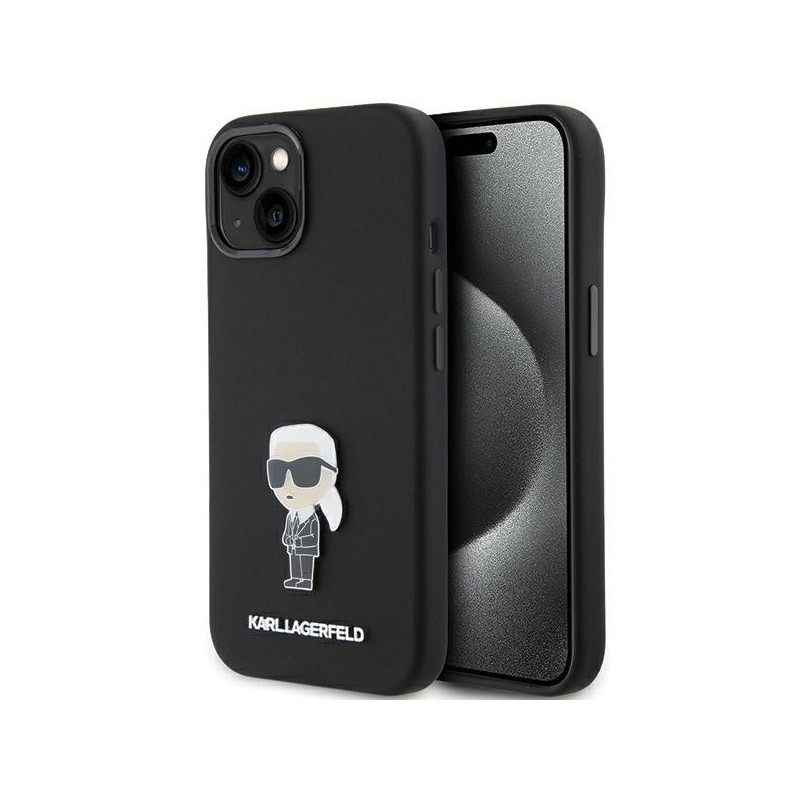Karl Lagerfeld Silicone Ikonik Metal Pin case for iPhone 15 Plus / 14 Plus - black