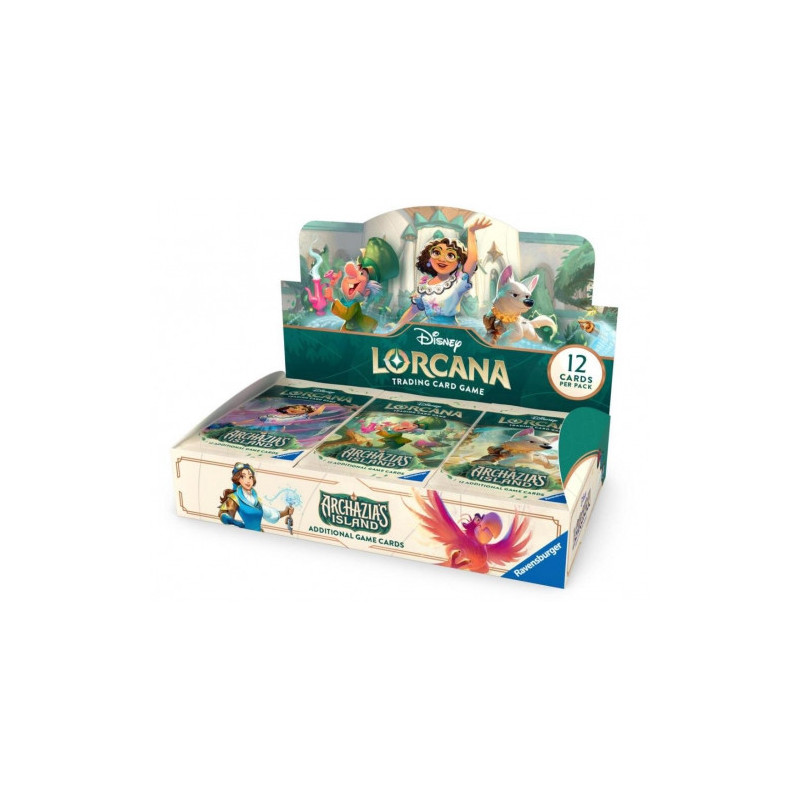 The Ravensburger TCG Disney Lorcana Archazia's Island Booster Box Display contains 24 booster packs for the Disney Lorcana Trading Card Game. Each pack contains a variety of cards that will enrich the game and your collection.