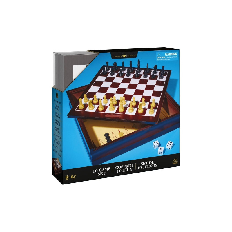 "Spin Master - 10 Game Set Blue" includes a variety of board games suitable for family and friends. Each game offers unique challenges and entertainment for players of all ages.