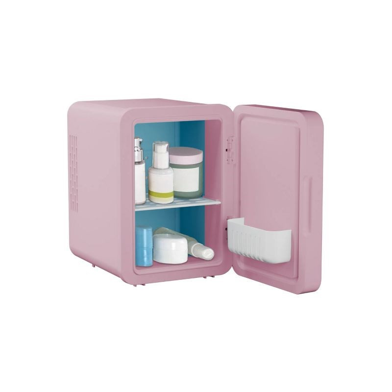 The ELLE 4L mini fridge has a capacity of 4 liters and can cool items down to 18 degrees below ambient temperature. It features an LED makeup mirror, heating function and interior light for added convenience.