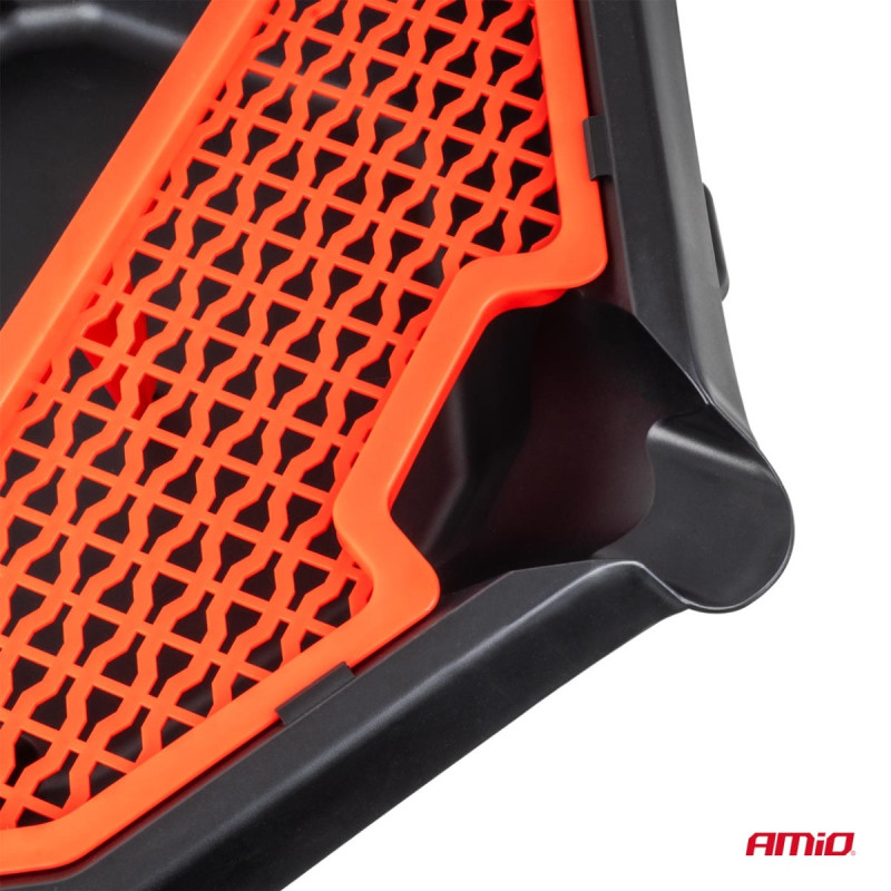 This professional oil drain pan on wheels is an ideal solution for workshops, automotive service centers, and DIY enthusiasts. It facilitates quick and clean drainage of used oil and other operating fluids, while the built-in tool compartment helps keep work organized. Its mobile design with wheels makes the pan easy to maneuver and suitable for any workshop environment.