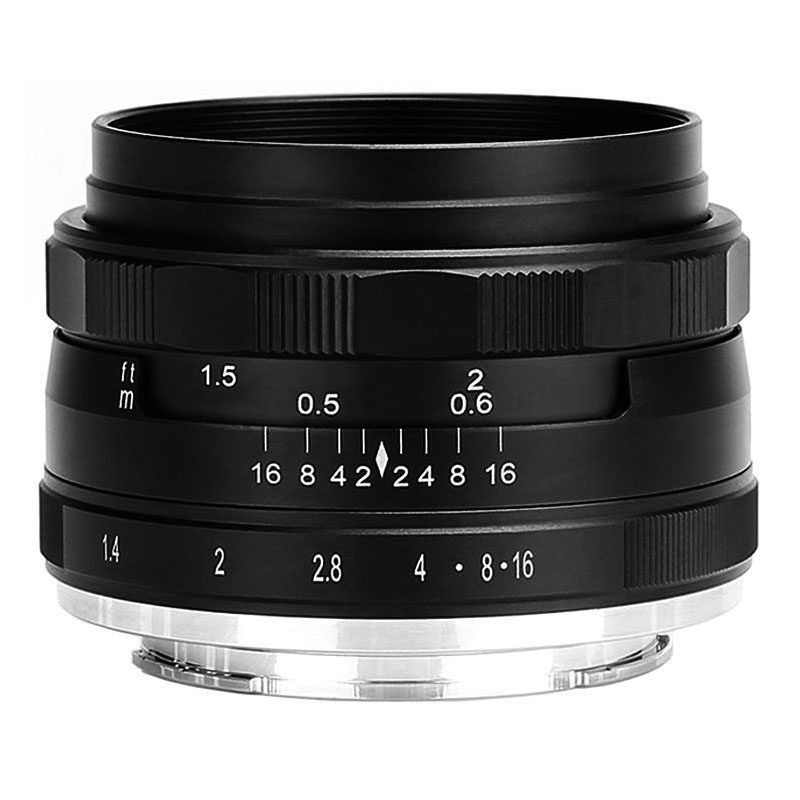 The Meike MK 35mm F1.4 lens has a bright f/1.4 aperture that provides good low-light performance and depth control. It features a manual focus system with a minimum focusing distance of 40 centimeters and a sturdy metal body.