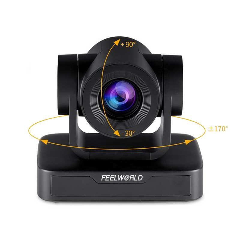 Feelworld USB10X smart HD PTZ camera provides FULL HD 1080p video quality at 30 frames per second and 10x optical zoom. It has a remote control, autofocus and a wide viewing angle that can be adjusted from 8.8° to 66°.
