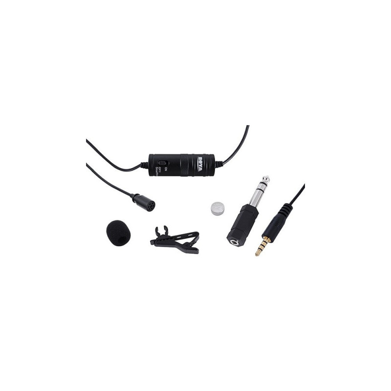 The Boya BY-M1 is a multifunctional clip-on microphone ideal for video recording, compatible with smartphones, DSLR cameras, and PCs. The microphone provides 360-degree audio recording coverage.