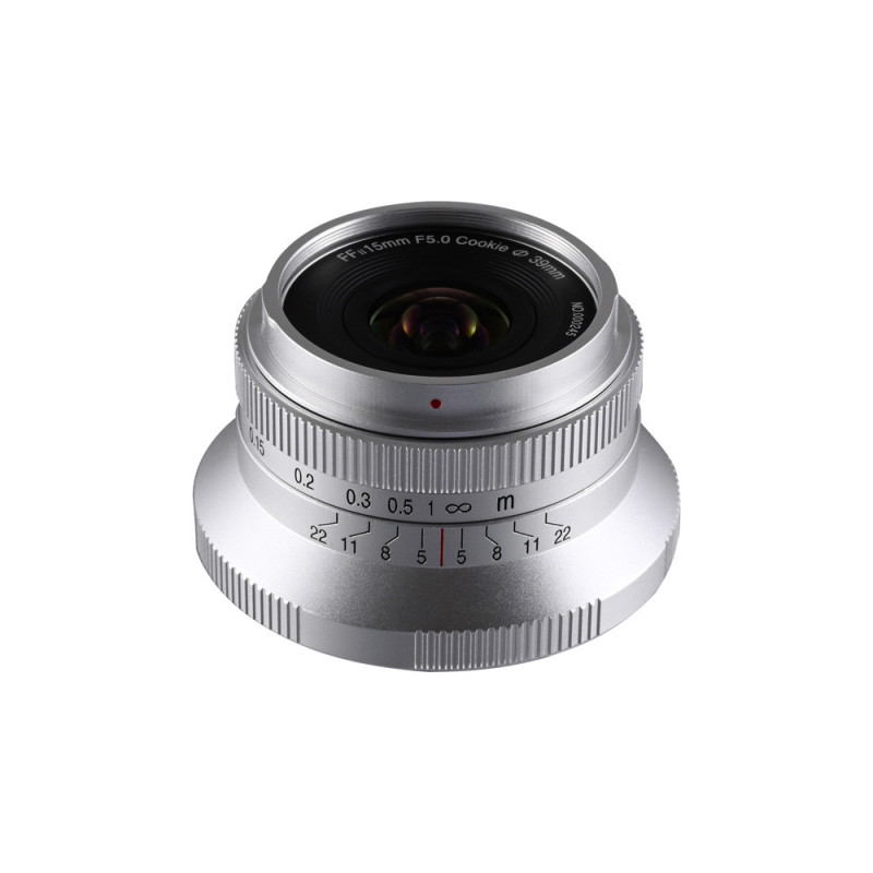 A compact 15mm f/5 ultra-wide-angle lens designed for full-frame mirrorless cameras with a 110° angle of view. Features a 12cm closest focusing distance and auto aperture control for ease of use.