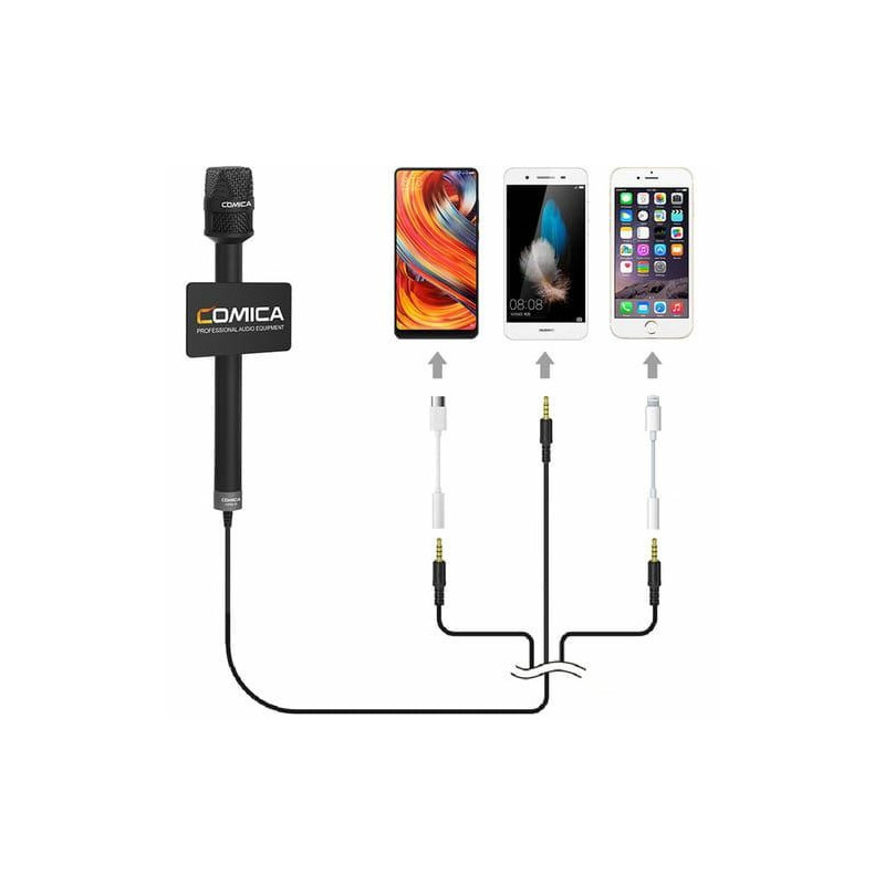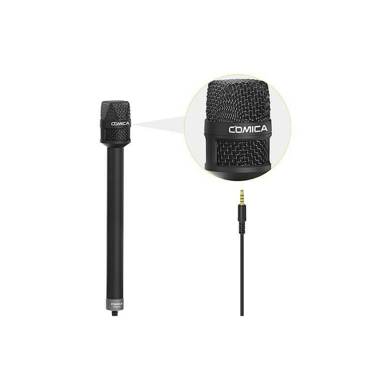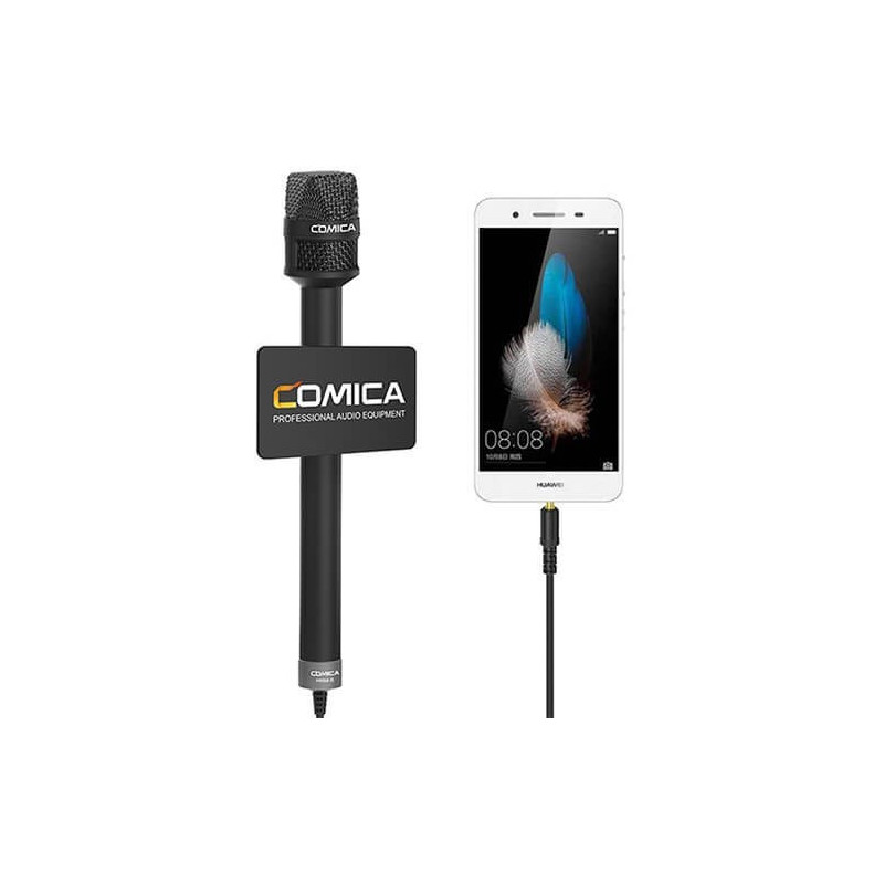 Comica HRM-S is a professional wireless microphone system for clear audio recording in interviews and video production. It includes a transmitter and receiver, is compatible with cameras and smartphones, and its internal rechargeable battery is convenient to use.