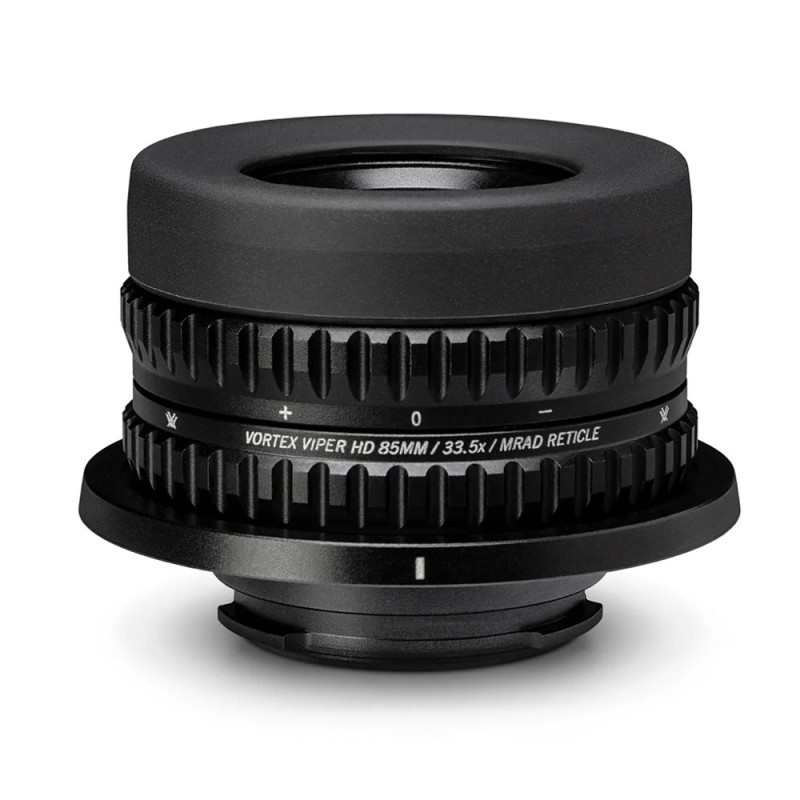 The Viper HD Reticle Eyepiece MRAD is designed for use with Vortex HD sighting instruments, providing a fixed 33.5x magnification for precise optical measurements. It features a diopter ring and a rotating reticle for custom image alignment.