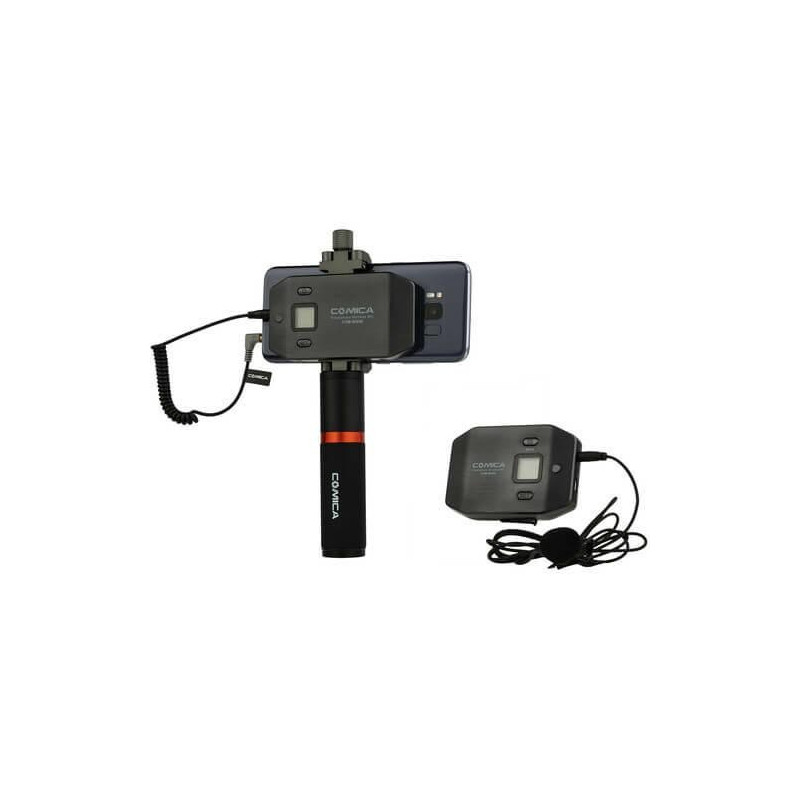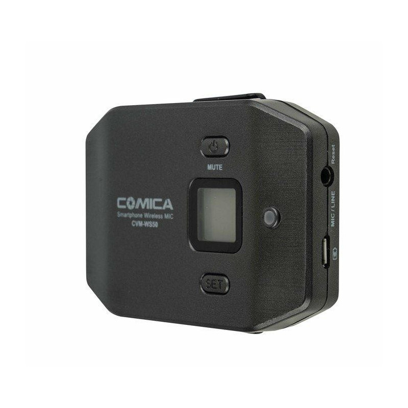 The Comica CVM-WS50B is a wireless microphone system that allows dual-channel recording with two microphones. It is compatible with smartphones, DSLR cameras and camcorders, has built-in rechargeable batteries and a compact design for portability.