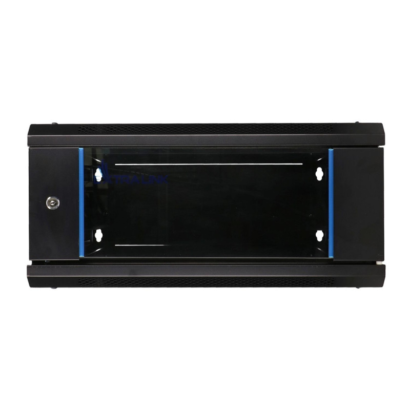 Extralink rack cabinet is designed for wall mounting in offices, server rooms and CCTV installation control rooms. The outer walls are made of cold-rolled steel sheet. The front door has tempered glass and it can be opened to the left or right side. The kit includes a set of keys, square M6 nuts for rack rail, rack cabinet mounting set and a full set of screws.